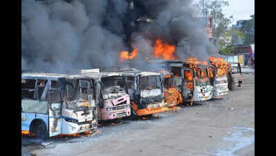 राँची के खादगढ़ा बस डिपो में कई बसों में भीषण आग।