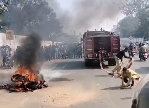 राँची। रातू रोड फ्लाइओवर OTC ग्राउंड के पास पल्सर बाइक में लगी आग।
