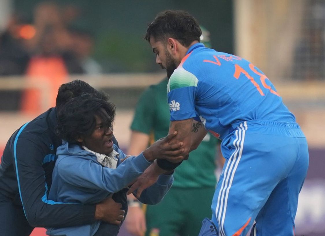 वनडे अंतरराष्ट्रीय मैच के दौरान एक पिच इन्वेडर अचानक मैदान में घुस आया।