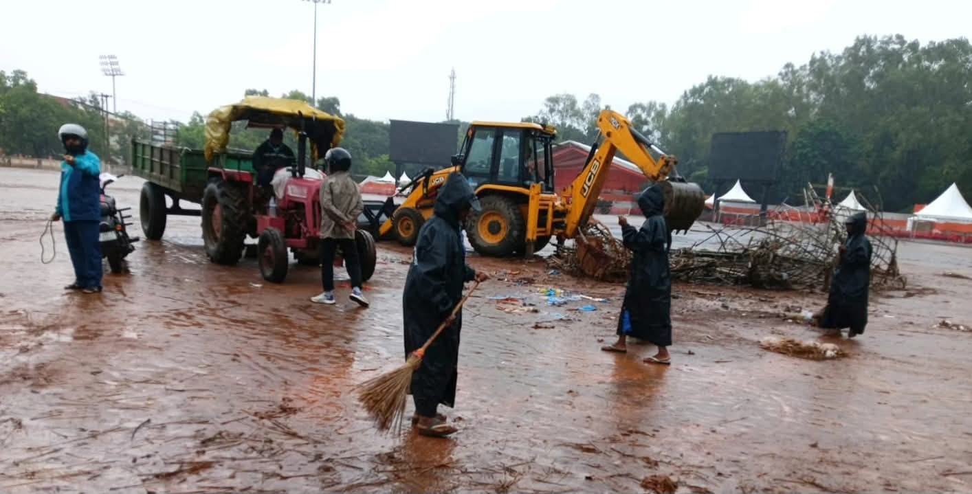 रावण दहन के बाद मोरहाबादी मैदान सहित अन्य जगहों पर चला सफाई अभियान.