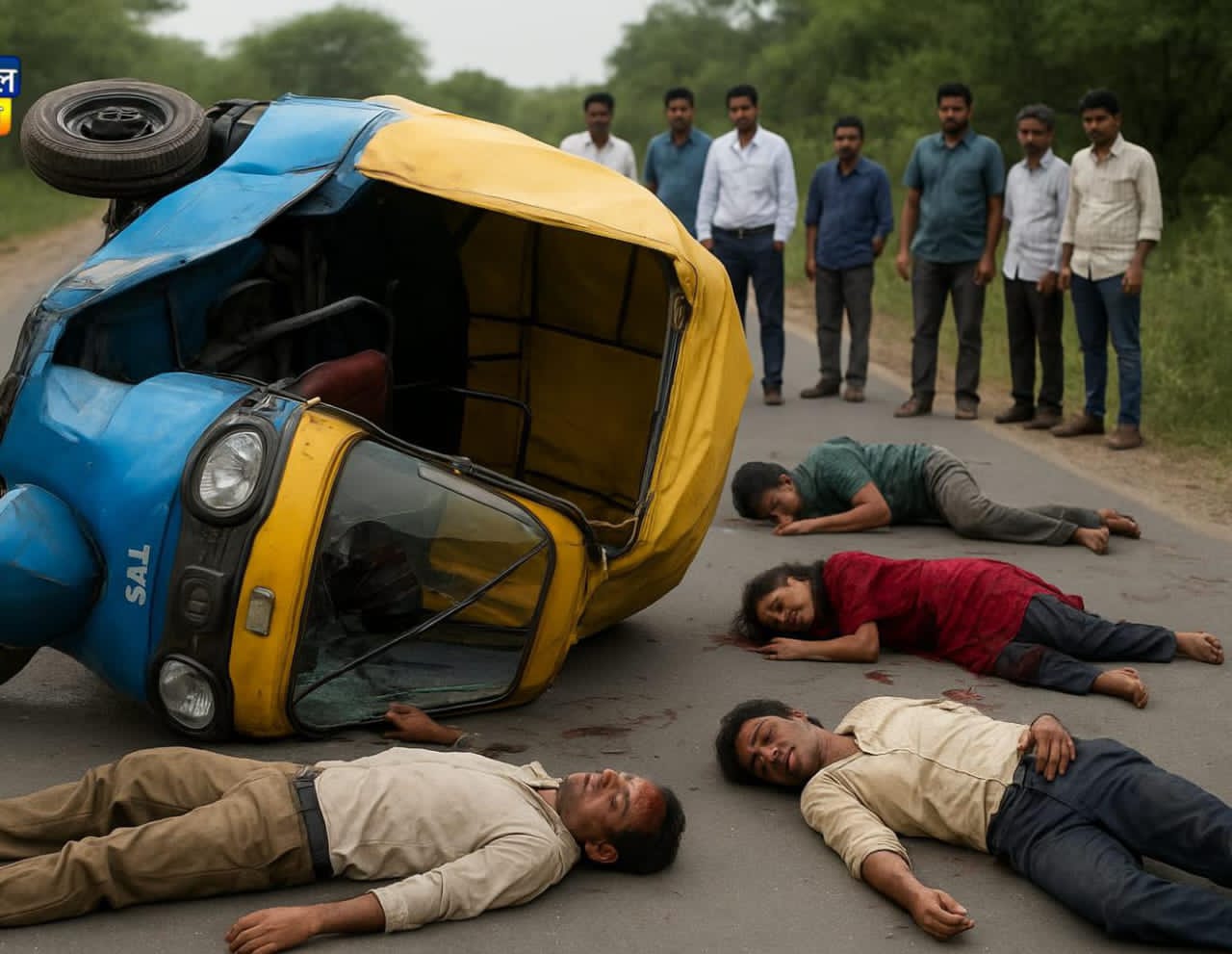 ऑटो पलटने से एक की मौत, चार गंभीर।